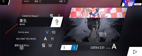放置Chapter 6的歌曲重生,达到0分,会显示虚假的φ。