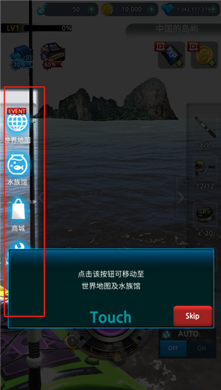 4、 点击左边的按钮,玩家可以快速到达世界地图、水族馆、商城等地;