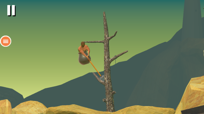 这是一个具有“惩罚”内容的登山攀岩类的游戏,说惩罚是因为游戏内没有存档的机制,操作不当或者失误都可能会导致玩家重头再来。而且游戏内的操作并非那么 简单 ,虽然只需要简单的滑动就能 控制 ,但是力道的和方向判定都是需要深思熟虑的。另外,时不时出现的令人厌烦的旁白和BGM,简直就是实实在在的嘲讽!