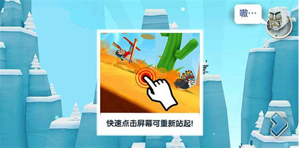 当你遇到摔倒的情况,只需快速点击屏幕就能快速站起来了,摔倒是很正常的,正常操作就行了