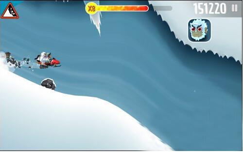 如果雪追不是很紧的话可以来个后空翻吃金币,摔倒也没事,不过中后期雪崩加紧的话就不行了,尽量选择下坠加速