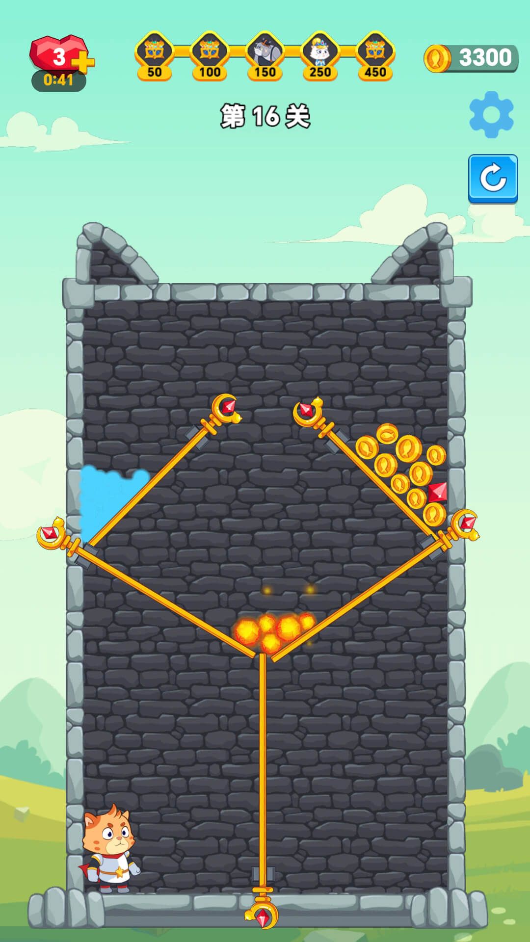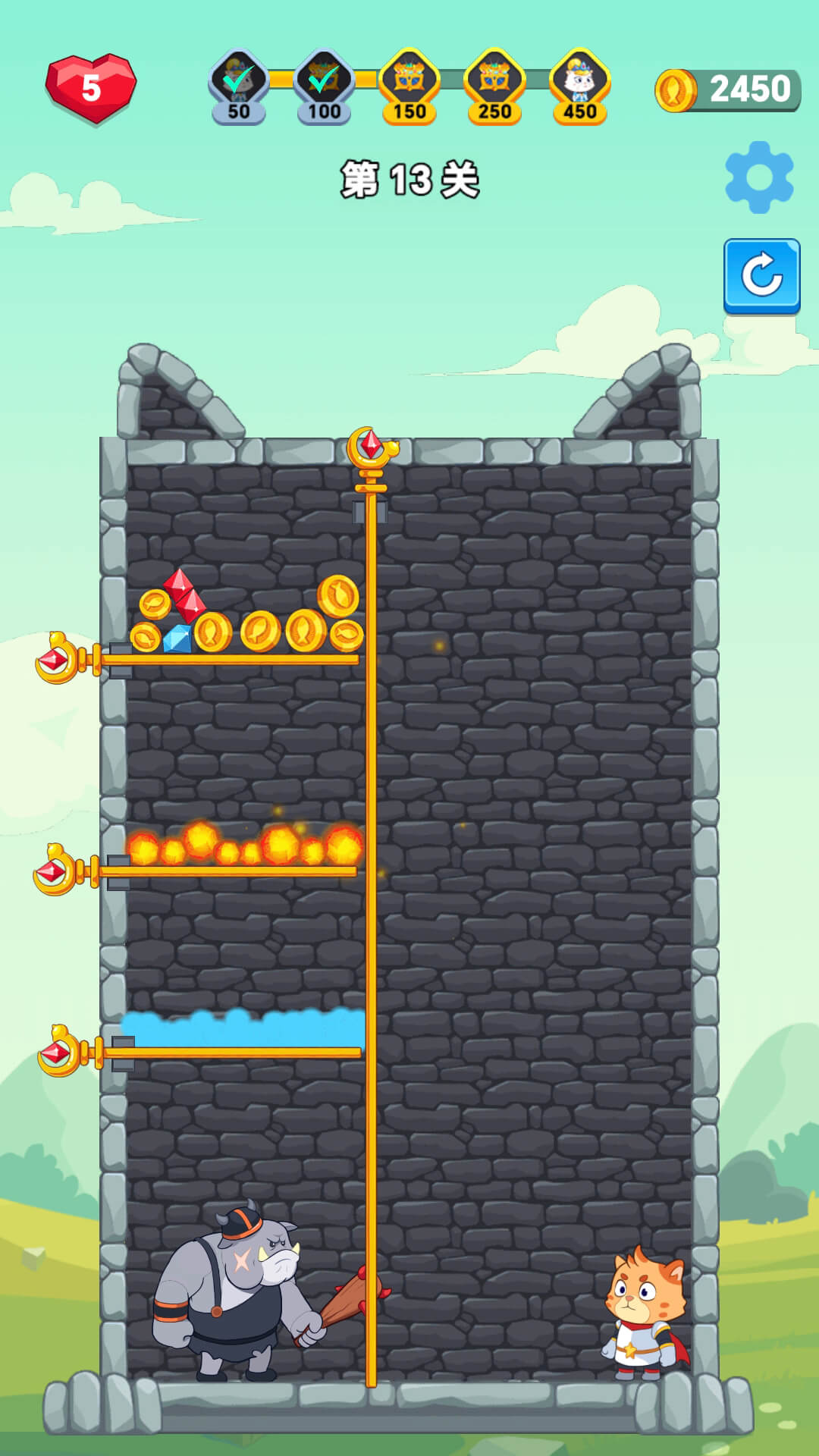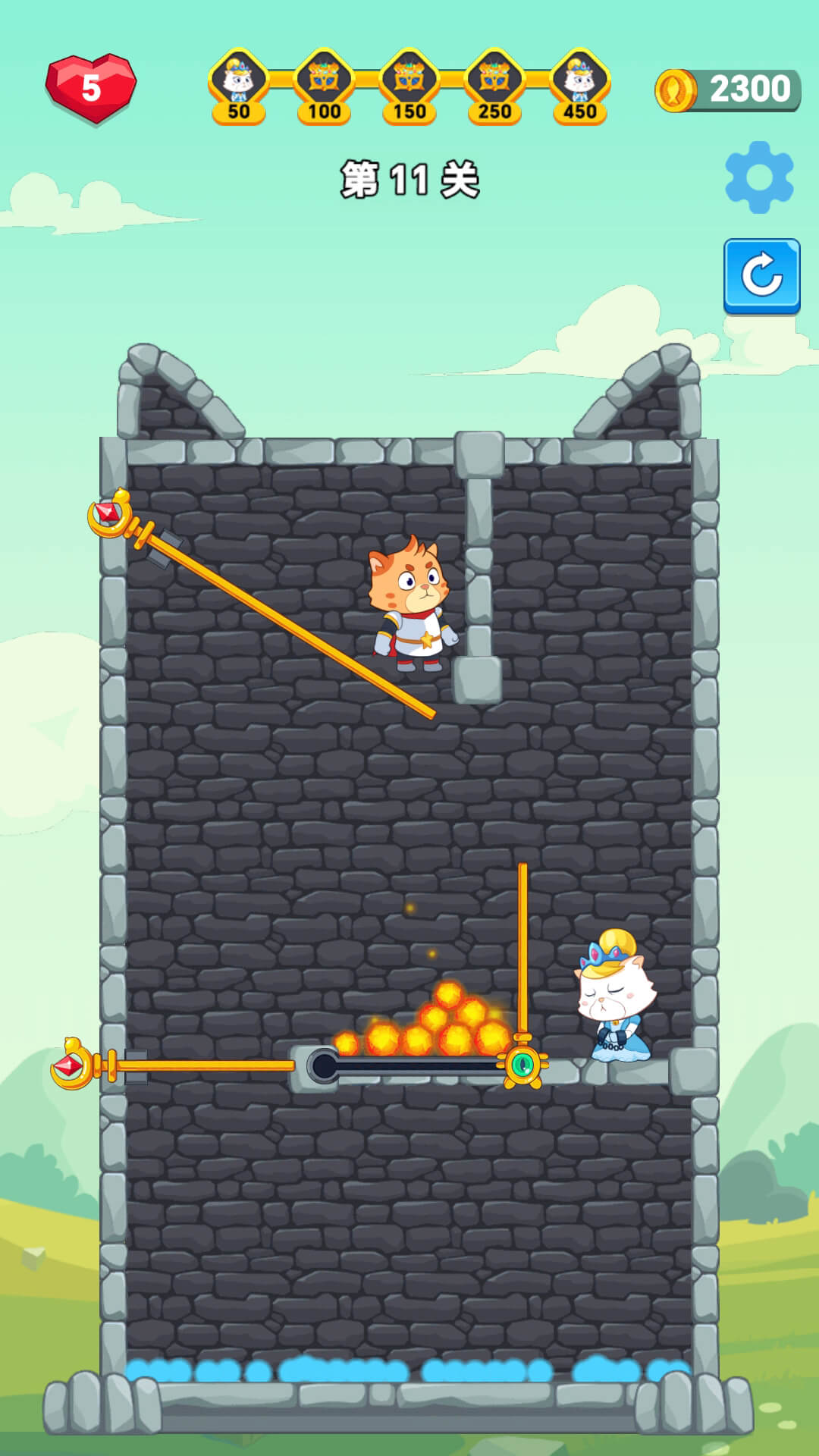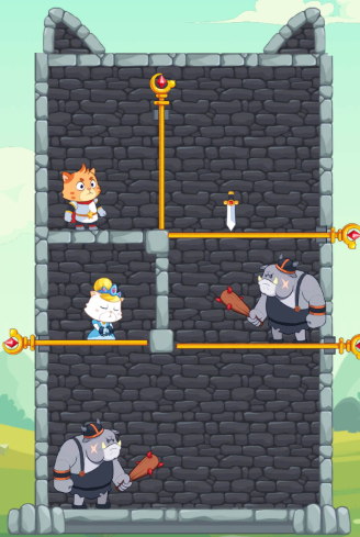 利用一切条件将怪物杀死,最终成功拯救喵公主,夺得宝藏,逃出生天。