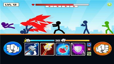 3.解锁道具和武器进行格斗,每款物的威力和打击音效都格外逼真, 简约画风内的战斗也有着无比带感的音效。