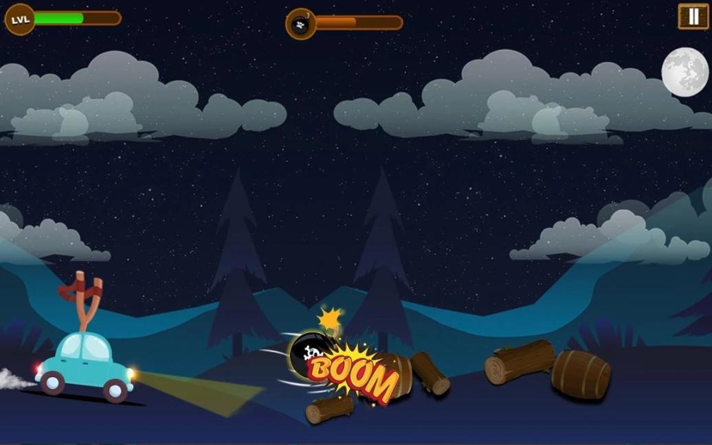 游戏有非常简洁的操作,玩家只用拉动弹弓并将弹药沿着一定的角度射出破坏路上障碍.