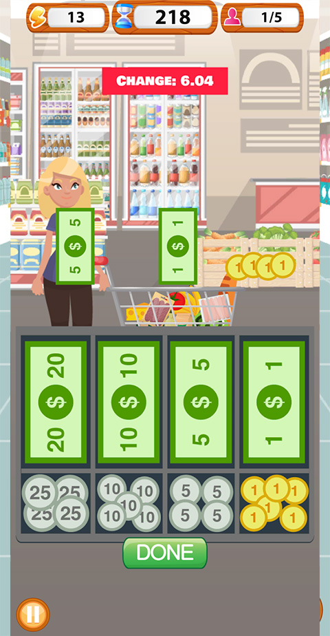 每种商品都有独特价格,准确计算和输入价格,并找零操作,以此锻炼计算能力。