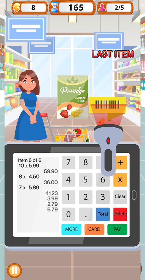 收银结账 游戏的核心玩法就是模拟收银工作。玩家需要快速扫描商品条码、计算价格并接受顾客的付款。随着游戏进程,顾客数量会逐渐增加,玩家需要提高自己的反应速度和准确度,避免因操作失误导致顾客不满。