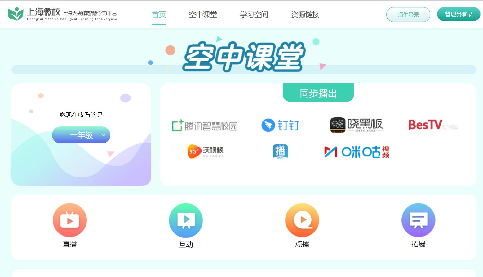 进入上海微校首页,在右上角找到【师生登陆】选项,