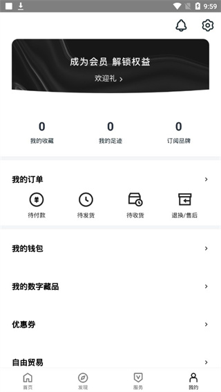 在我的里面可以看到自己收藏的藏品、足迹、订阅品牌等等。